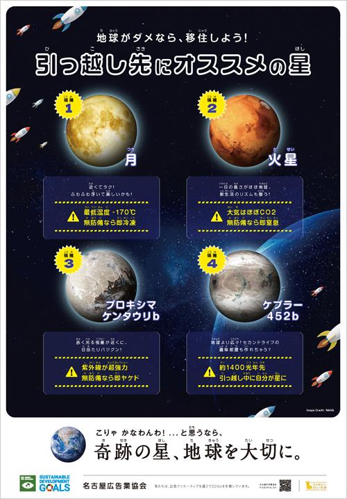 アイデアあふれる応募作品の中から、「ゴール13/気候変動に具体的な対策を」をテーマにした作品「引っ越し先にオススメの星」がグランプリに選出されました。