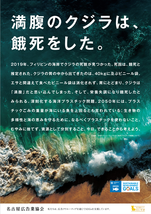 アイデアあふれる応募作品の中から、「ゴール14/海の豊かさを守ろう」をテーマにした作品「満腹のクジラ」がグランプリに選出されました。